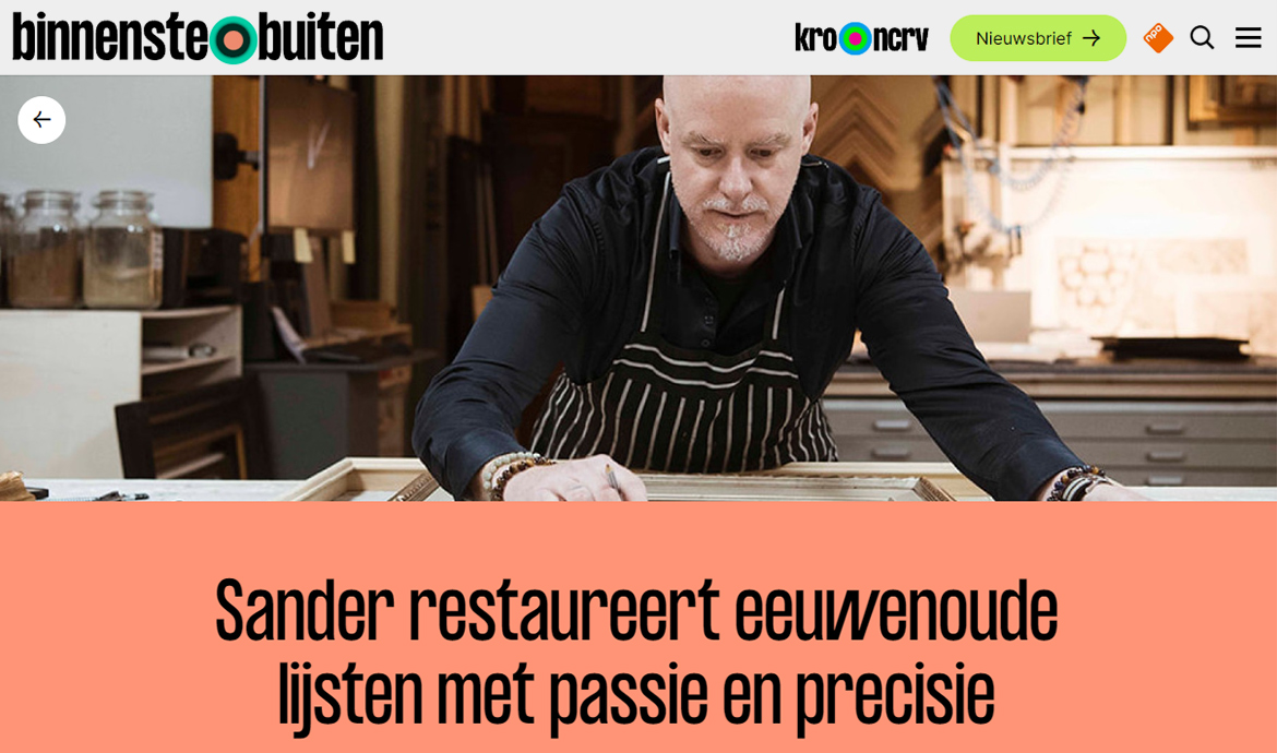 Hij was kok en restaureerde in zijn vrije tijd meubels en boten. Uit nieuwsgierigheid ging hij twaalf jaar geleden langs bij Boselie, de gerenommeerde lijstenmaker en restaurator in Den Bosch. Ze zochten daar iemand, had hij gehoord. Nu runt Sander van Boekel zelf de zaak van zijn voorganger en leermeester. Met succes. En met creativiteit, liefde en plezier. Een portret van een bijzondere vakman.