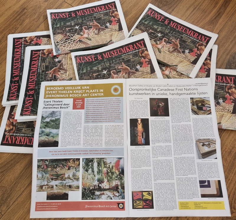 Nu samen met Edward Tchai van Moedhart Gallery. Een leuk interview over een unieke samenwerking in ‘s-Hertogenbosch. Het prachtige ambachtelijke lijsten maken, de kracht van een goede inlijsting en het conserveren van je kunstwerken. Met ins en outs over First Nations kunst van de inheemse bevolking van de Northwest Coast (Vancouver langs de kust tot Alaska). De komende maanden is deze te vinden in veel galeries en natuurlijk bij ons in het atelier en bij Moedhart Gallery.